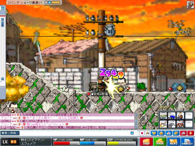結局裏通り1で手下ちゃんを狩っていました。。。。。・゚・(ノД`)ヽ(゚∀゚ )アヒャヒャ